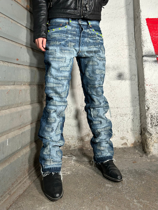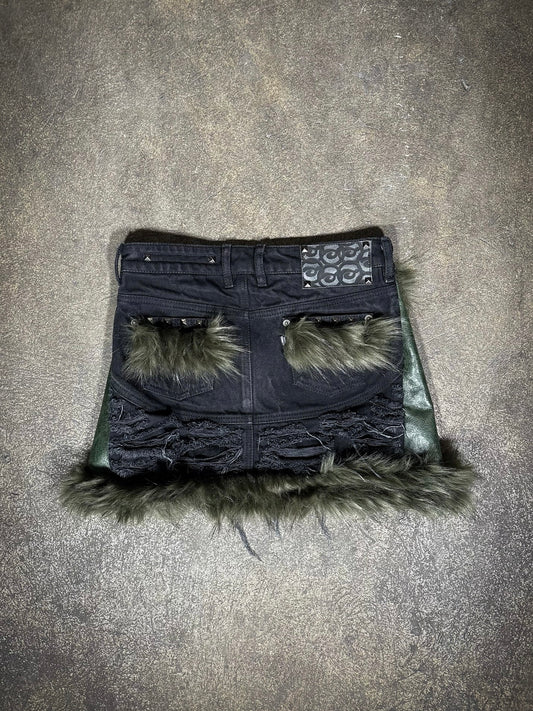 Subliminal Studios Leather Furr Denim Skirt Olive Grinch