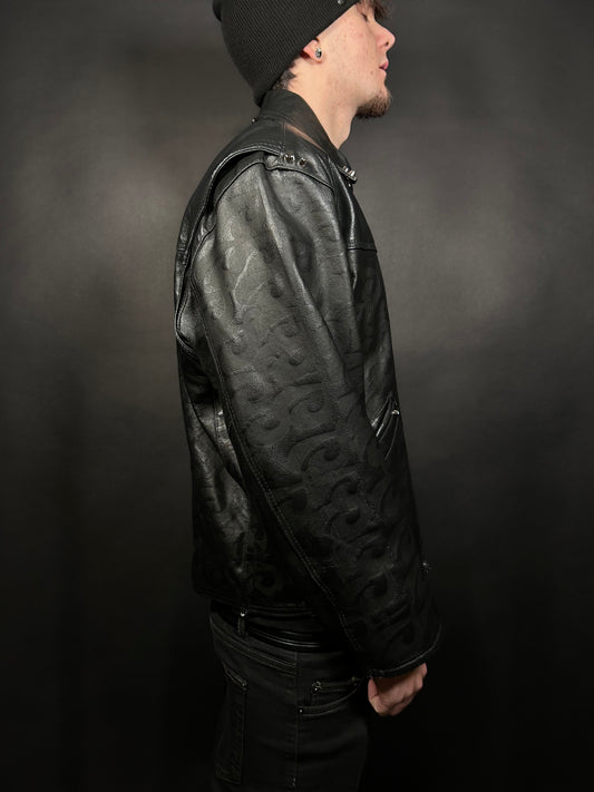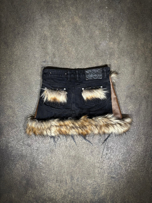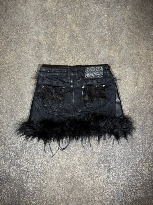 Subliminal Studios Leather Furr Denim Skirt Black Panther